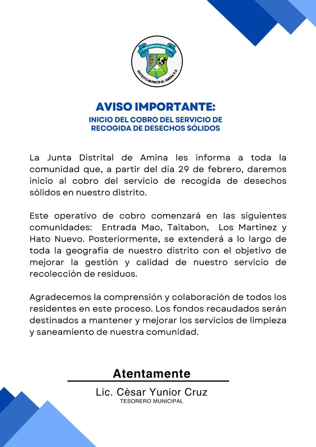 Escríbele al Director Municipal