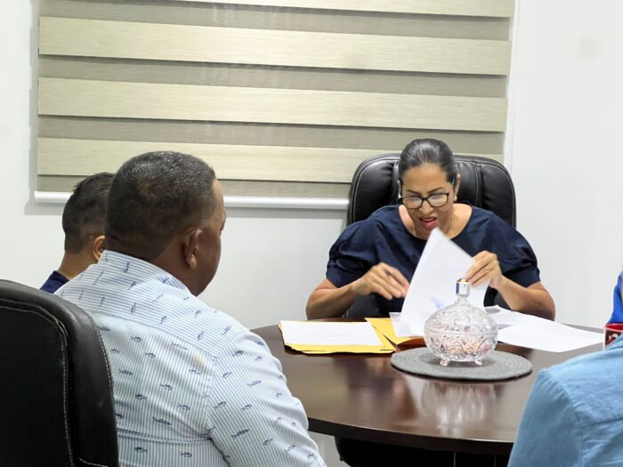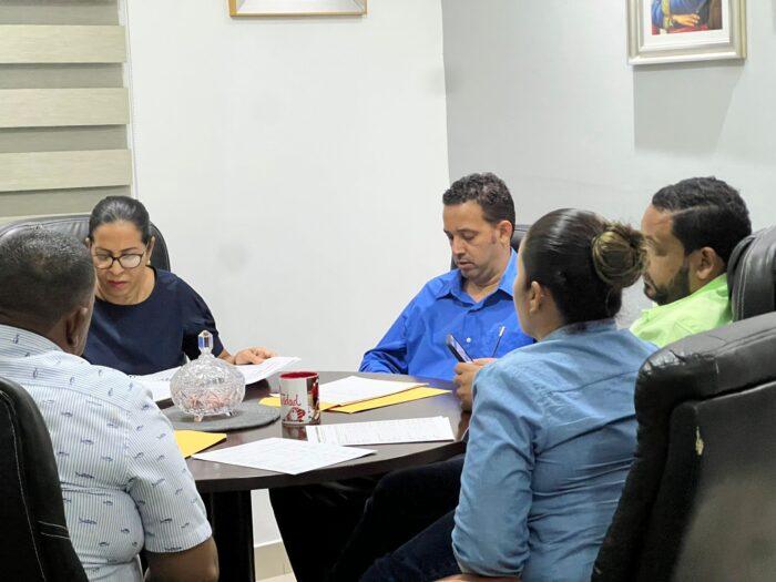 El comité evaluador de la Junta Distrital de Amina supervisa los documentos de los ingenieros para la ejecución de aceras y contenes en los sectores de esta comunidad, verificando que los requerimientos sean los correctos y se seleccione el que debidamente cumpla.