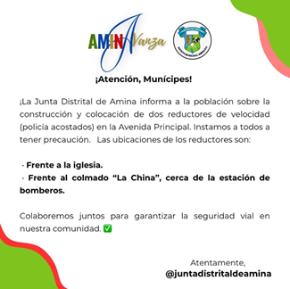 Se colocaron 2 reductores de velocidad en la vía principal del D.M Amina